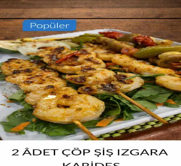 2 ÇÖP ŞİŞ IZGARA KARİDES+ ROKA SALATASI 1 ADET EKMEK İLE BİRLİKTE